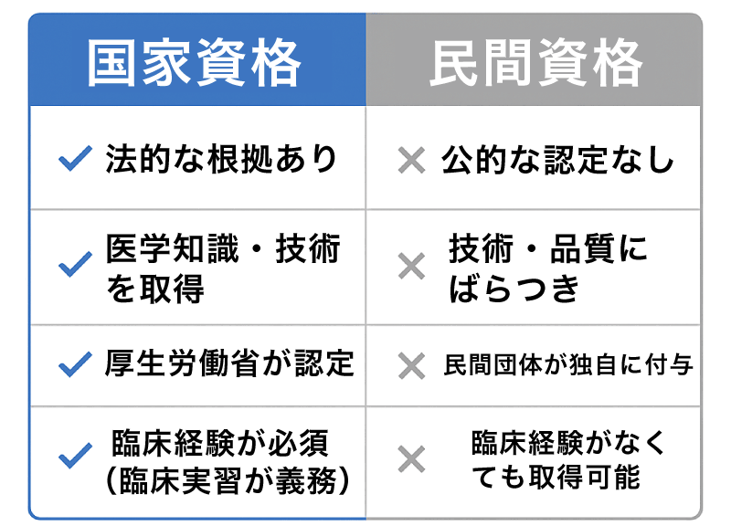 国家資格とは、国が法律に基づいて一定の知識・技術・倫理基準を満たした者だけに許可される公的な資格です。